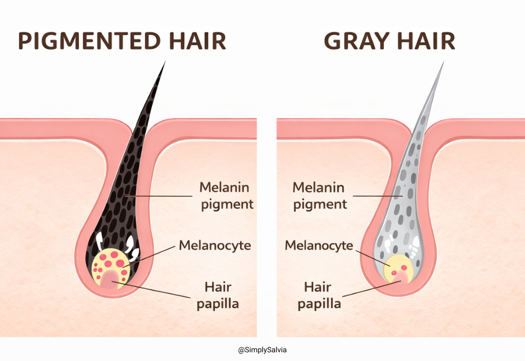 Why does hair lose its pigment and turn gray? Genetics, oxidative stress, and aging all play a role, but researchers are increasingly looking at nutrition as another piece of the puzzle. A meta-analysis of case–control studies found that people with premature graying had lower levels of copper and calcium in their blood compared with controls. Copper is essential for the enzyme that helps produce melanin aka the pigment that gives hair its color. Calcium is tied more broadly to follicle signaling and hair structure.