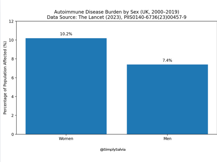 The scale of this dataset removes ambiguity. Female excess in autoimmunity isn’t anecdote or bias in diagnosis, it’s a robust epidemiological signal that demands biological explanation.