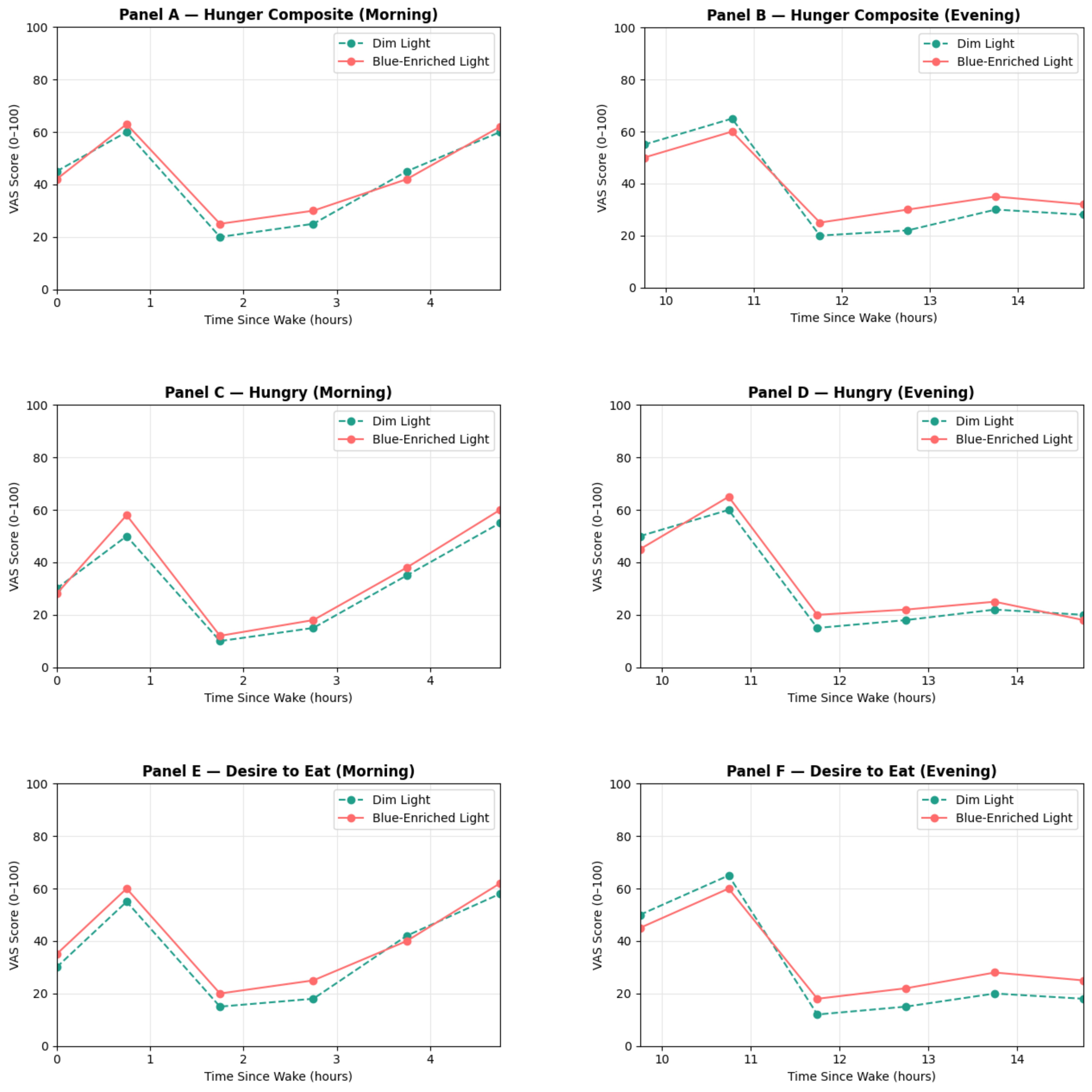 Weaker insulin response — The body didn’t manage blood sugar as effectively under blue light, suggesting reduced insulin sensitivity.