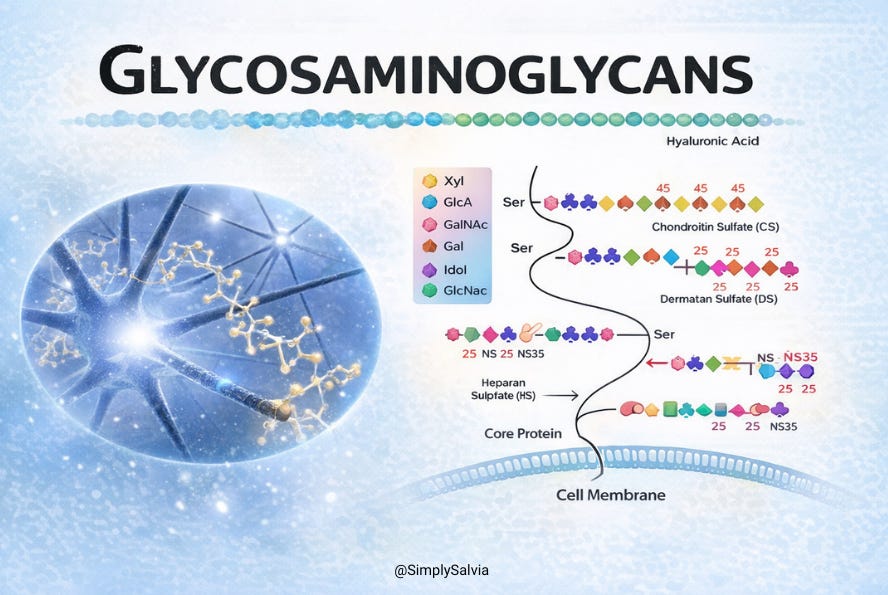 Beyond collagen, connective tissues rely on glycosaminoglycans (GAGs) — long sugar chains that maintain hydration and elasticity in cartilage and fascia. A 2025 paper in Biochimica et Biophysica Acta reviewed evidence on how dietary minerals (magnesium, zinc, copper, and manganese) regulate the enzymes that synthesize and cross-link GAGs.
