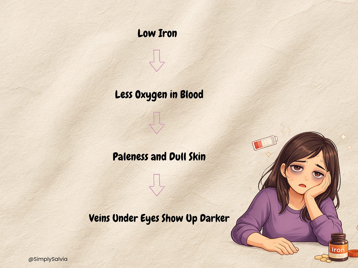Treating the anemia (through diet or supplements) often brightens the under-eye area as your blood and skin regain a healthy color.