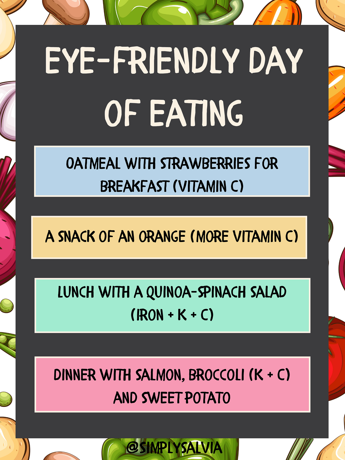 Vitamin K is known for its role in blood clotting, but in the topical skincare world, vitamin K creams are sometimes used for dark circles (especially after procedures to reduce bruising). While the evidence is mixed, having enough vitamin K in your diet might support healthy circulation. Dark leafy greens like kale, collard greens, spinach, and broccoli are loaded with vitamin K (and also vitamin C and iron!). So, a green smoothie or a big daily salad could be an under-eye ally. Vitamin C, on the other hand, is crucial for making collagen, the scaffold that keeps under-eye skin thick and resilient. It’s also an antioxidant that can help prevent damage from UV or pollution that might lead to pigmentation. Get vitamin C from citrus fruits, bell peppers, berries, kiwi, tomatoes, etc. A simple goal: try to have at least 2 servings of fruit and 3 servings of vegetables each day, and include something green daily. An example eye-friendly day of eating: